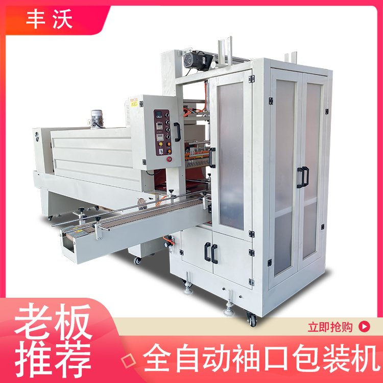 袖口式熱收縮包裝機器適用范圍廣,經濟效益高,操作方便。適用的包裝材料為PE薄膜,相比傳統的紙箱包裝,大大節約了包裝成本,再食品、飲料、土特產、陶瓷、玩具等行業應用廣泛。全自動高速熱收縮包裝機原理是用pe膜包裹物料、然后熱封切,再經過加熱使收縮薄膜裹緊物料,充分顯示產品外觀,在內部風機的配合下使加熱爐室充滿溫度均勻的熱風,由溫度控制儀表控制爐室內的溫度并保持恒溫狀態。物品通過鏈條式輸送帶送入爐室,在高度狀態下熱收縮膜進行收縮,配合出口強大的冷風散熱,PE膜迅速并緊貼物品表面。