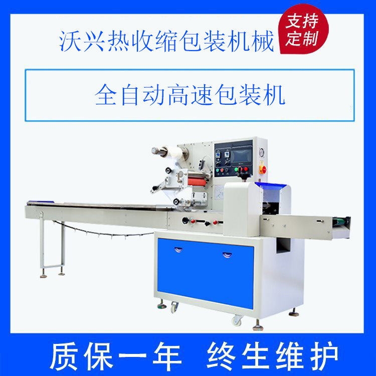 產品特性介紹■ 全自動高速熱收縮包裝機適應范圍:食品、藥品、飲料成組包裝、碗面、奶茶、蚊香、墻紙、練習本、濾清器、電氣開關、各種文具、工業零件和日用化妝品貼體包裝等。 全自動高速熱收縮包裝機性能特點:■ 單體或任意包裝。■ 防切安 全離合裝置,不損壞包裝物。■ 增加廢料回收裝置,使包裝更美觀,比傳統的包裝機節省材料約3%-10%.■ 彩色觸摸屏控制系統,操作為簡便且外形美觀;PLC控制使系統更穩定