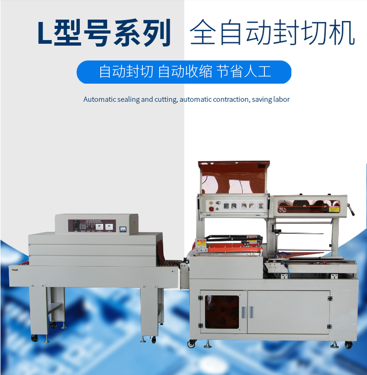全自動熱收縮包裝機采用自動封口和切斷,封口時將產品手工放到位后只需點動啟動開關即可自動完成封口過程,也可由時間控制器控制定時封口,切斷后產品自動輸送出到收縮爐道里。出爐即完成一個循環操作,等待進入下一個循環過程。全自動熱收縮包裝機系列具有設計先進,性能穩定可靠,節電高效果好,結構新穎美觀,操作維修方便等特點,可適用于任何收縮薄膜的收縮包裝。 電子無級變迅自動高溫,固能繼電器控制,穩定可靠、壽命長、