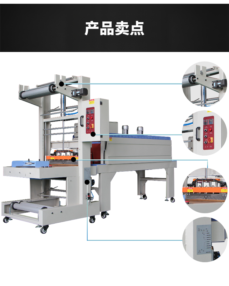 全自動熱收縮包裝機采用自動封口和切斷,封口時將產品手工放到位后只需點動啟動開關即可自動完成封口過程,也可由時間控制器控制定時封口,切斷后產品自動輸送出到收縮爐道里。出爐即完成一個循環操作,等待進入下一個循環過程。全自動熱收縮包裝機系列具有設計先進,性能穩定可靠,節電高效果好,結構新穎美觀,操作維修方便等特點,可適用于任何收縮薄膜的收縮包裝。 電子無級變迅自動高溫,固能繼電器控制,穩定可靠、壽命長、低噪音。